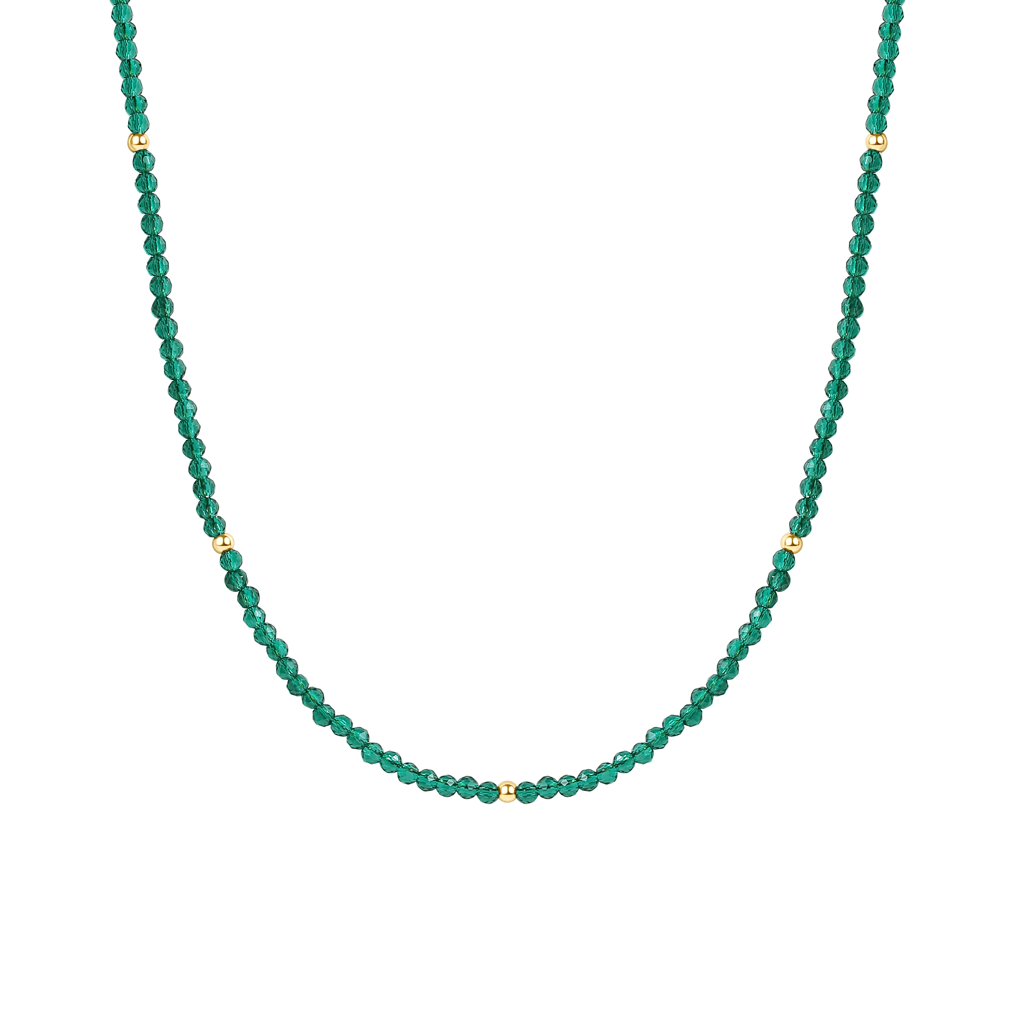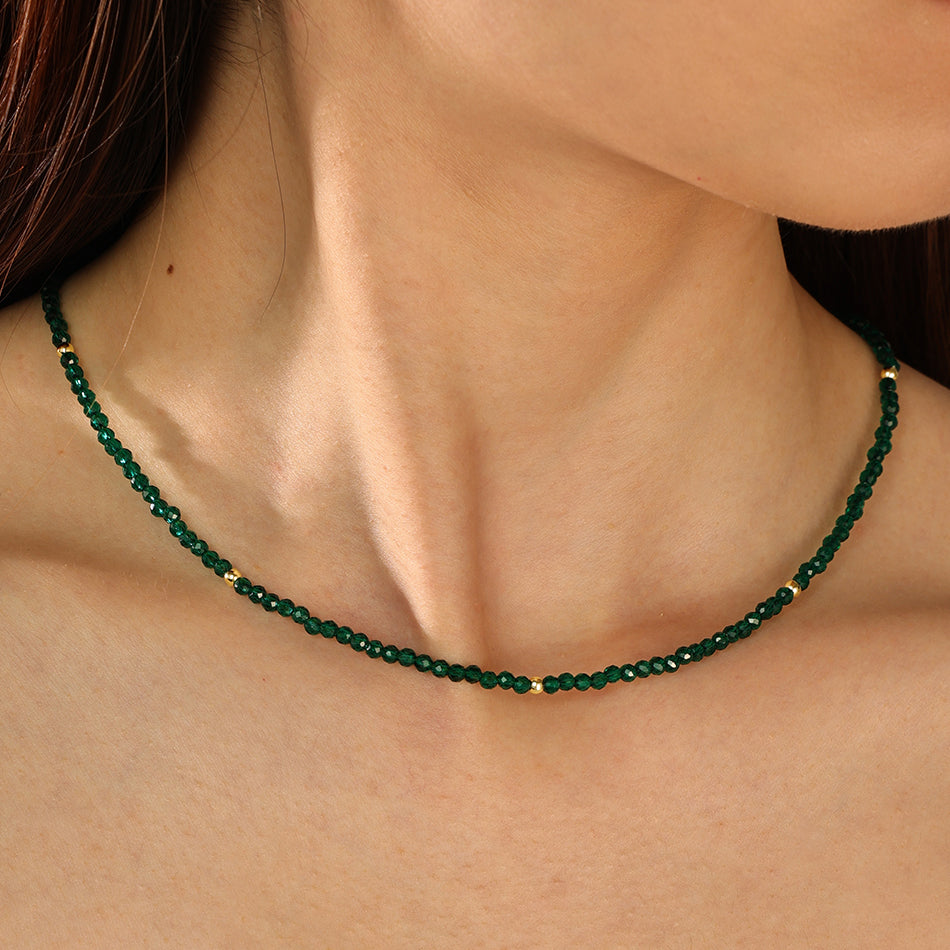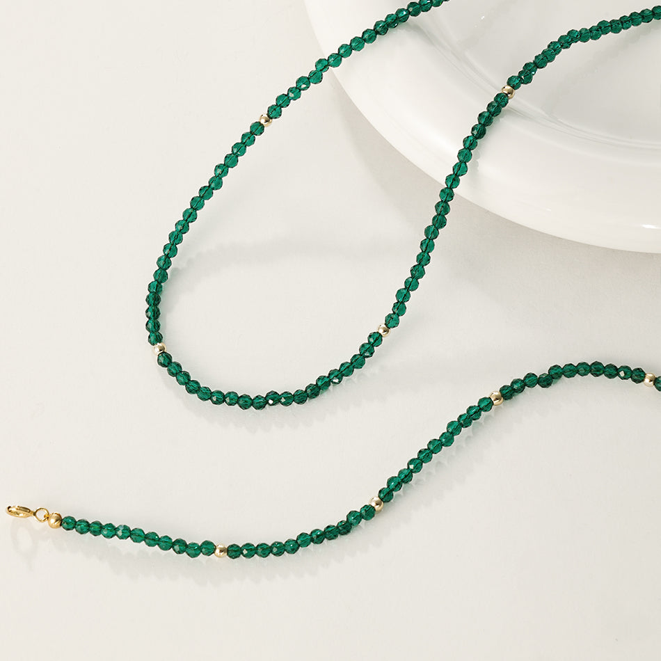 PN0086 925 Sterling Silver Vintage Green Crystal Bead Necklace