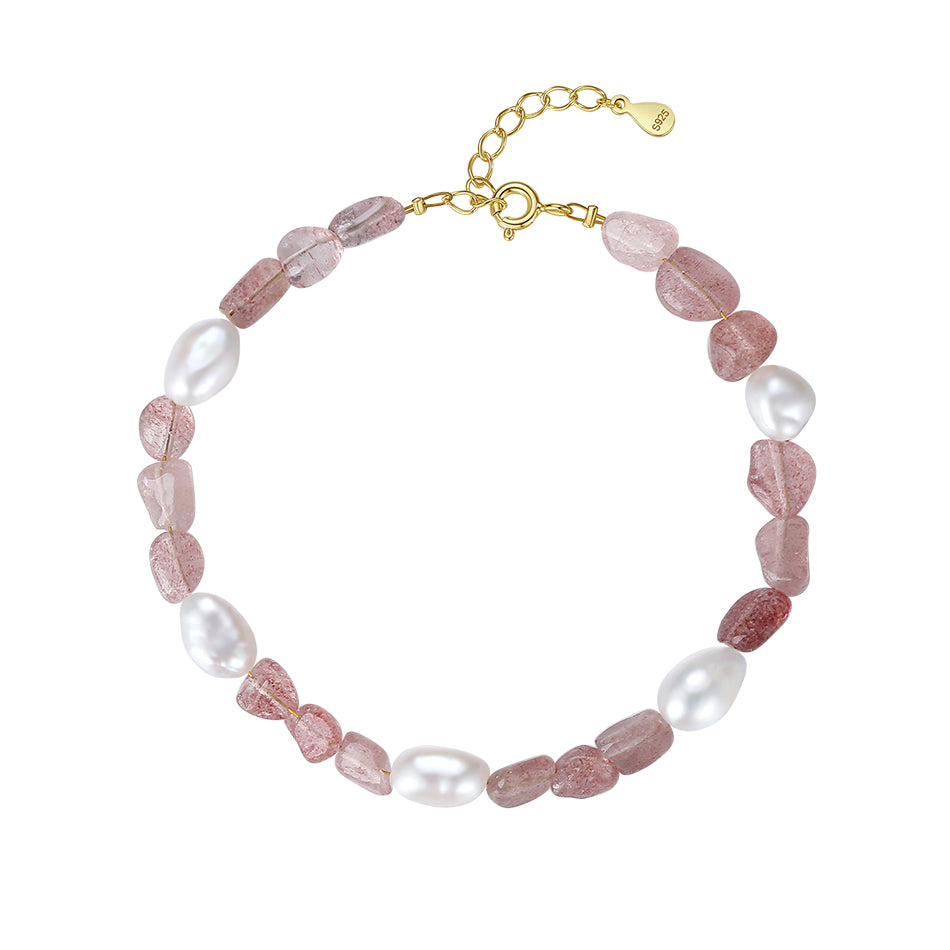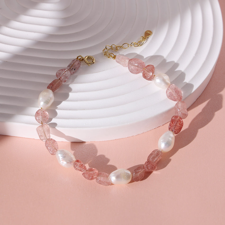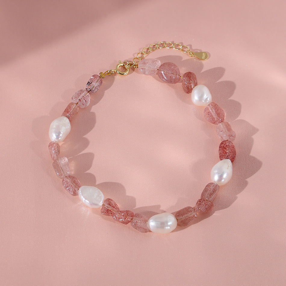 Freshwater Pearl & Strawberry Crystal Bracelet