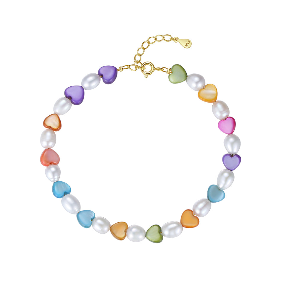 PB0007 925 Sterling Silver Rainbow Heart Freshwater Pearl Bracelet