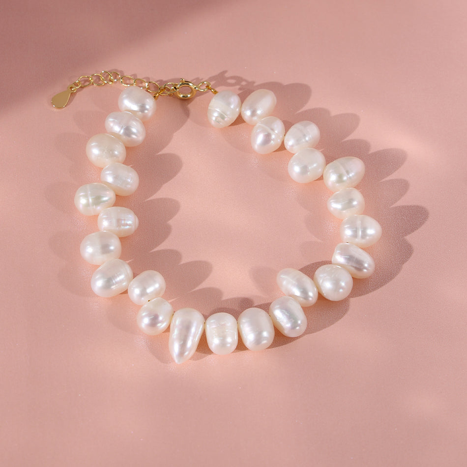 PB0037 925 Sterling Silver Dainty White Freshwater Pearl Bracelet