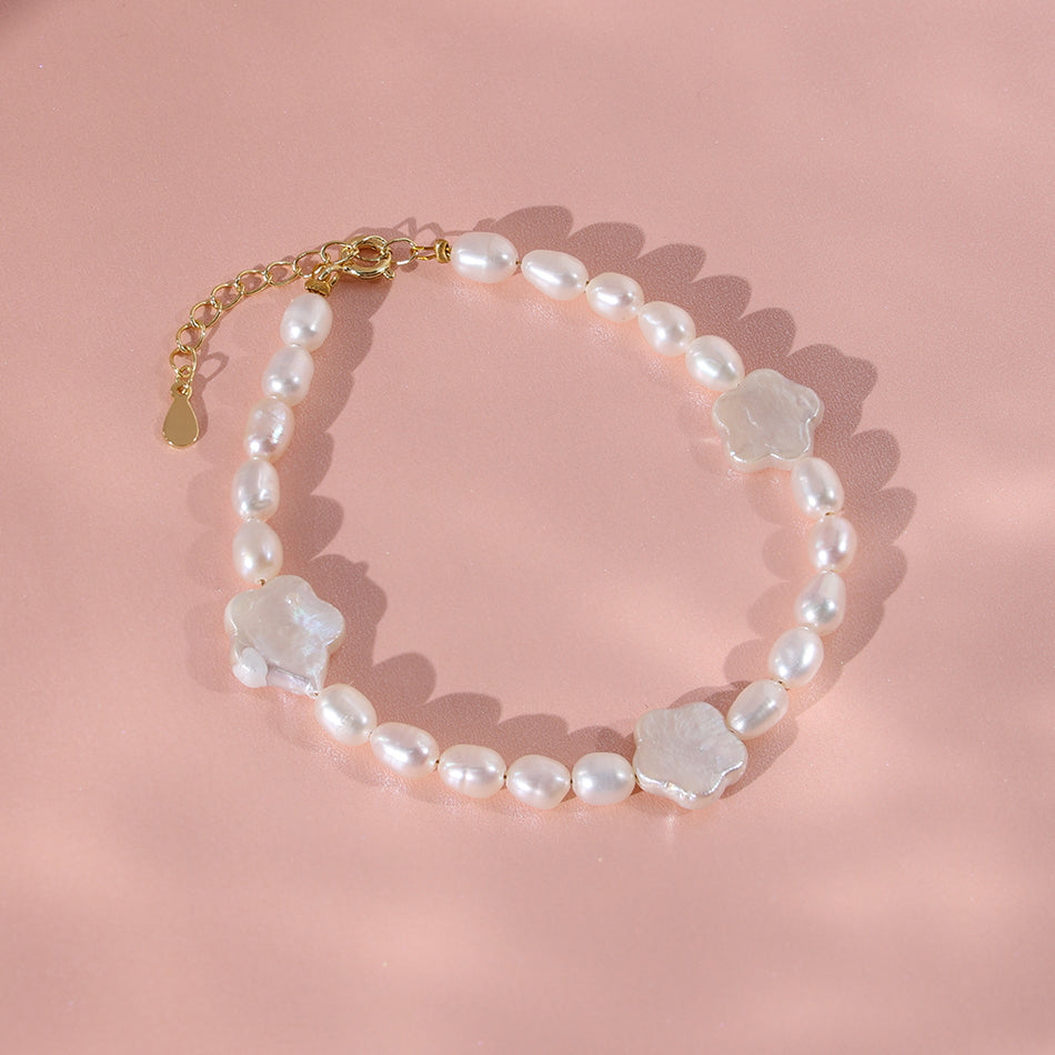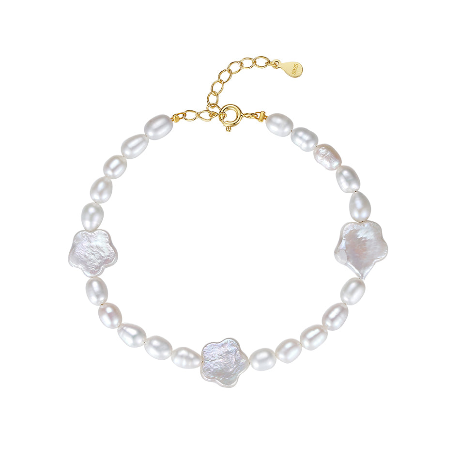 PB0043 925 Sterling Silver Flower Freshwater Pearl Bracelets