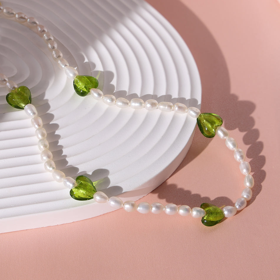 PN0003 925 Sterling Silver Green Crystal Freshwater Pearl Necklace