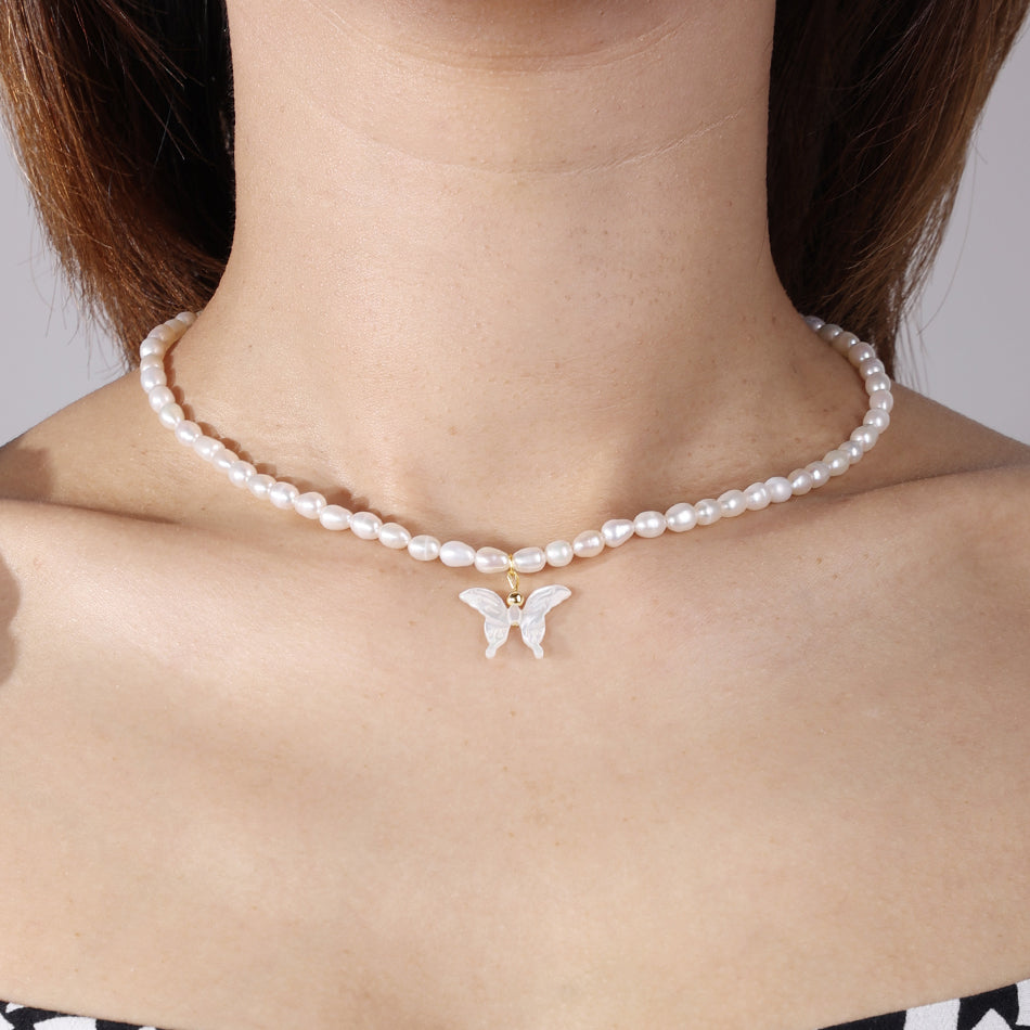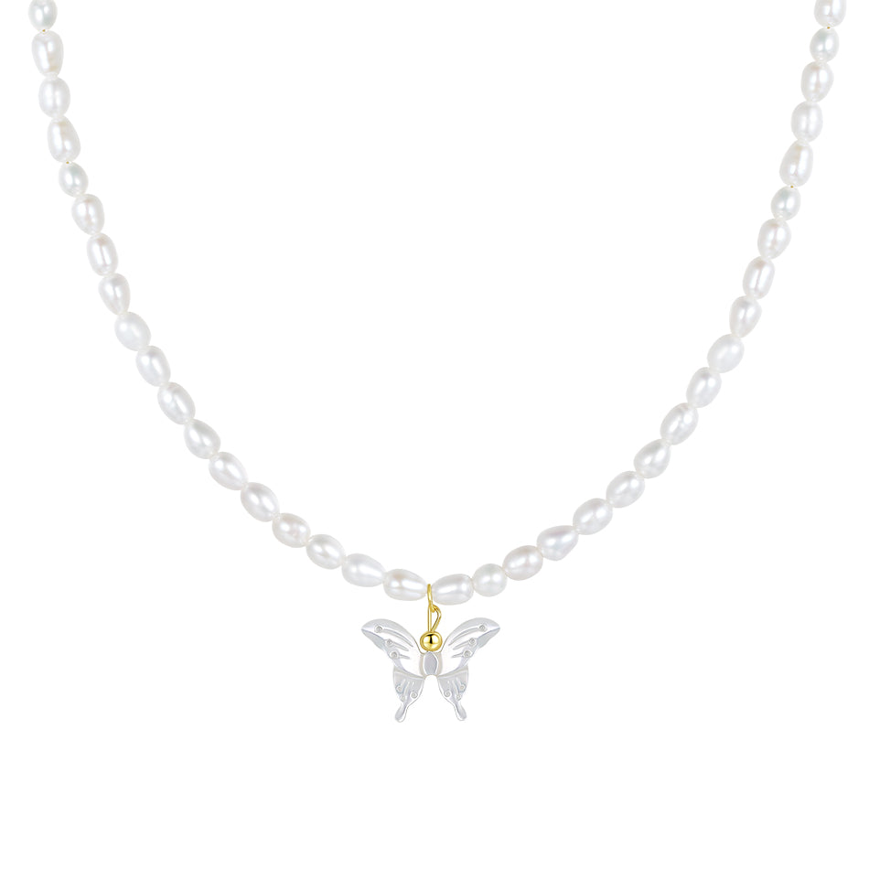 PN0005 925 Sterling Silver Dainty Butterfly Pearl Necklace