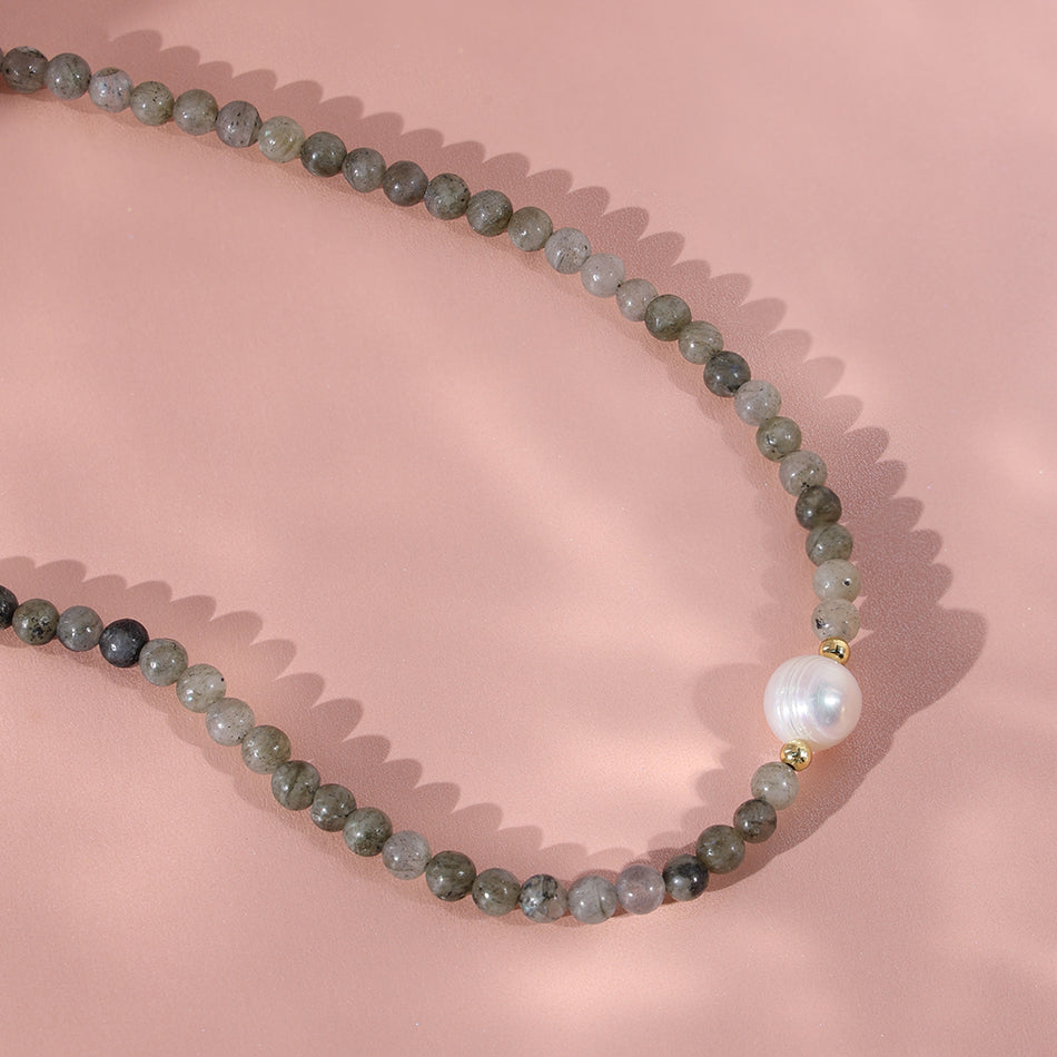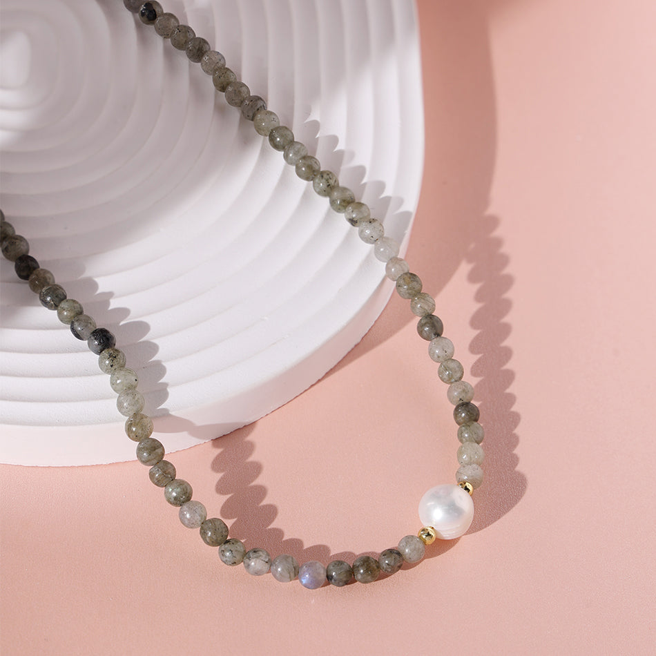 4MM Glitter Stone Bead Pearl Women Necklace |