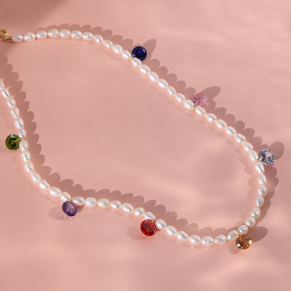 Rainbow Cubic Zirconia & Freshwater Pearl Necklace