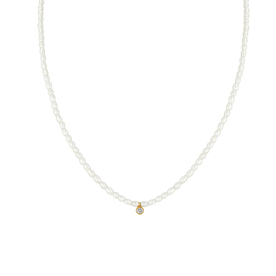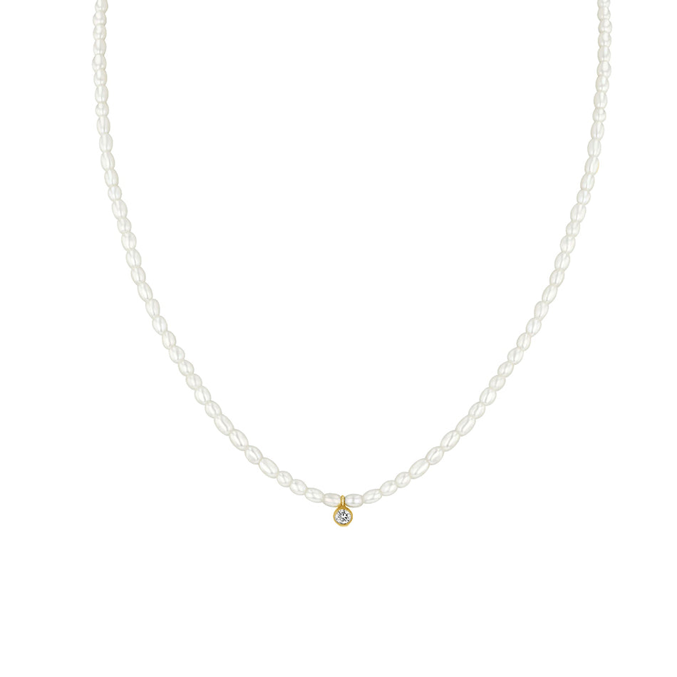 PN0075 925 Sterling Silver Round Bezel Set CZ Pearl Necklace
