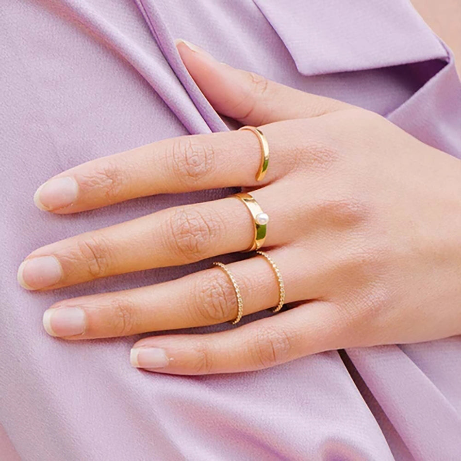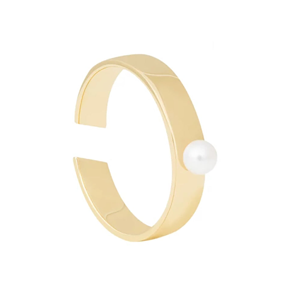 FJ0035 925 Sterling Silver Pearl Signet Open Ring