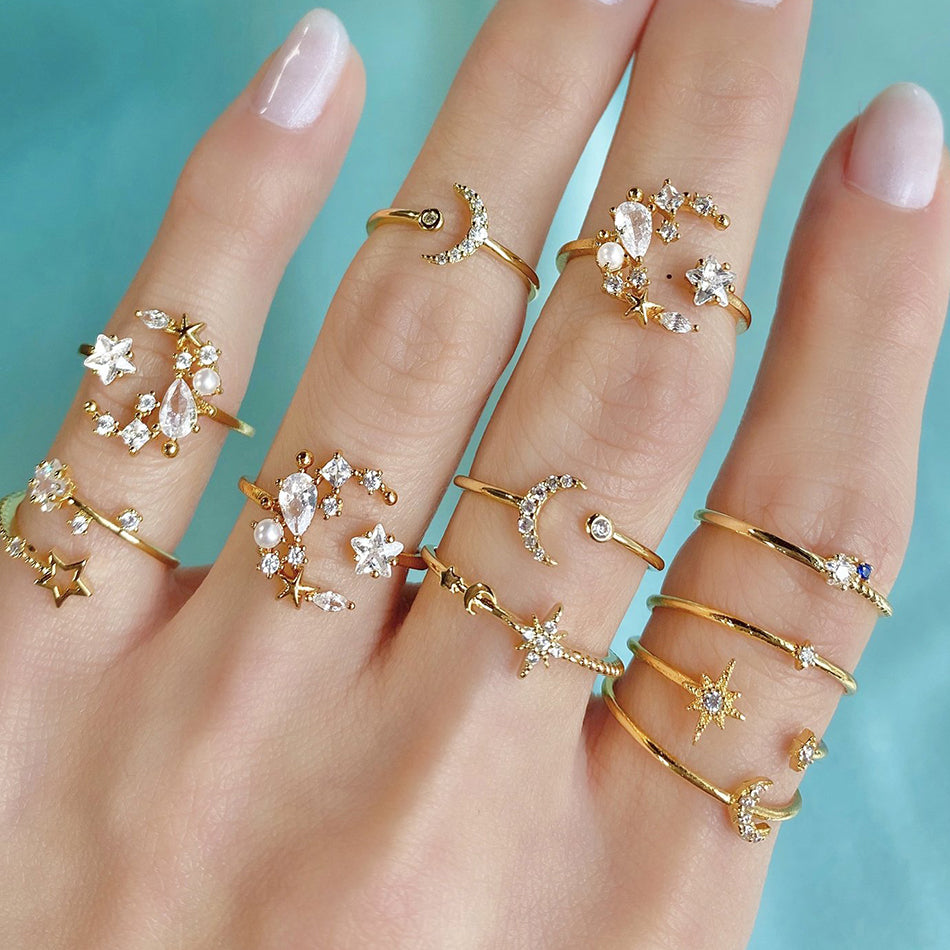 FJ0660 925 Sterling Silver Moon Cubic Zircon Ring