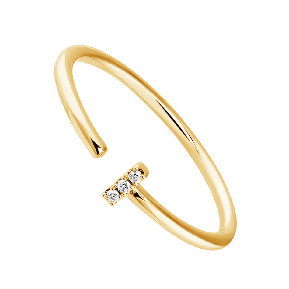 FJ0094 925 Sterling Silver Mini Zircon Bar Opening Ring