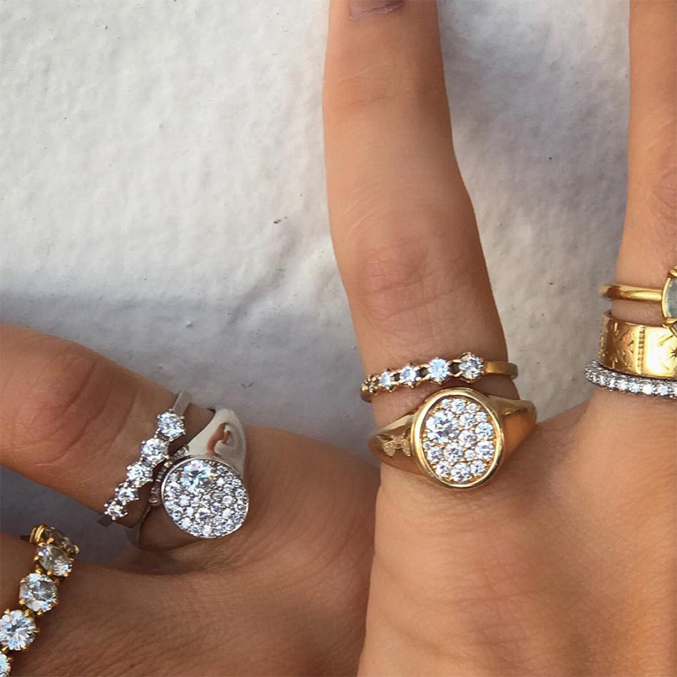FJ0424 925 Sterling Silver Pave Zircon Oval Signet Ring