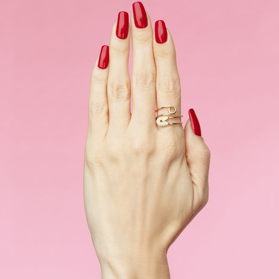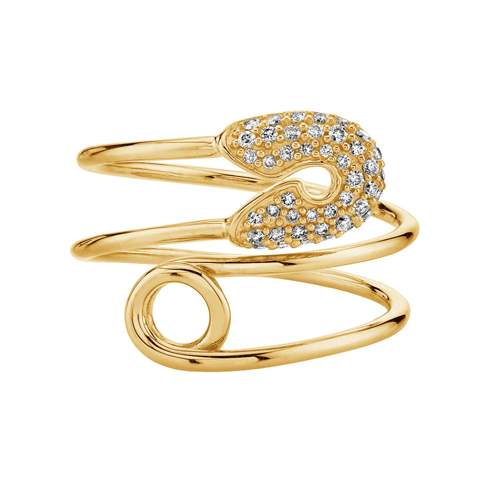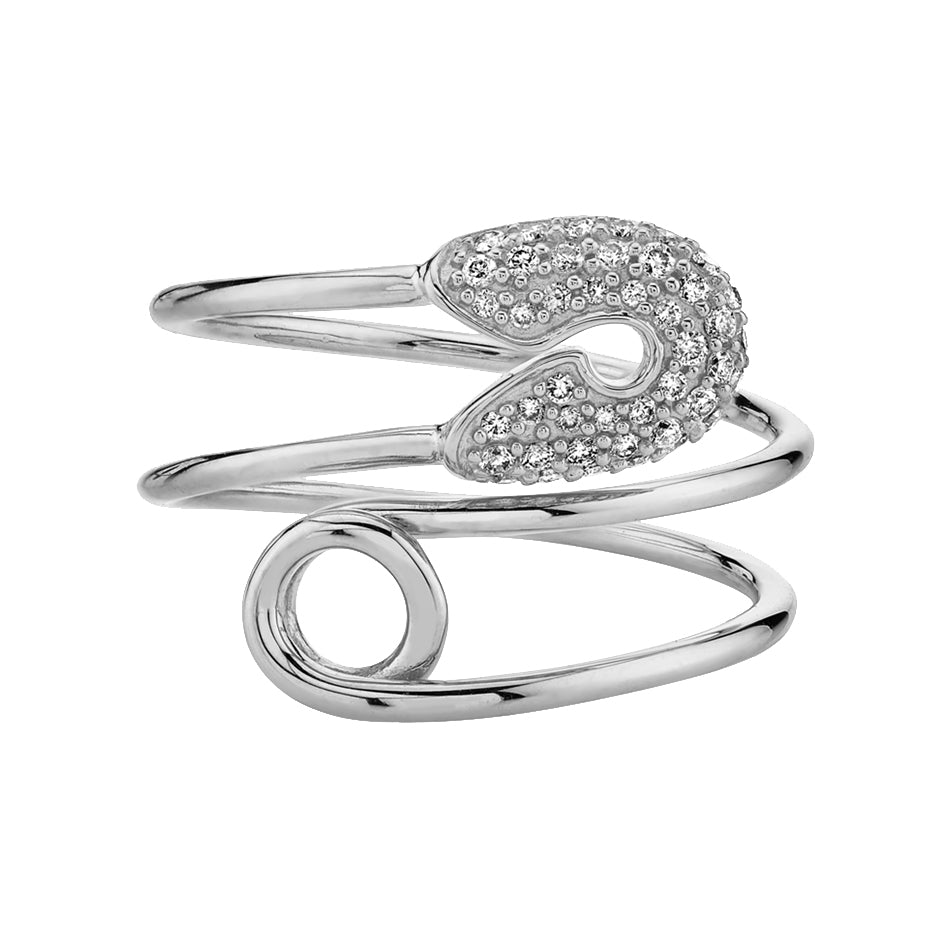 FJ0439 925 Sterling Silver Zircon Safety Pin Ring