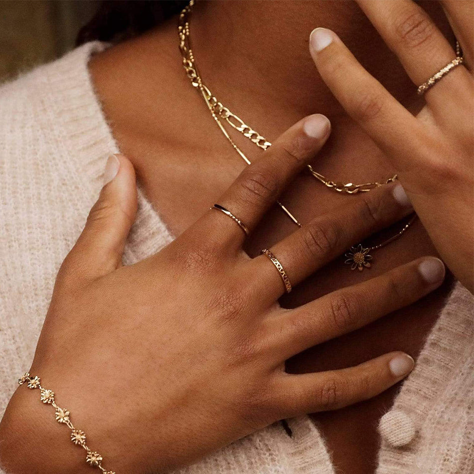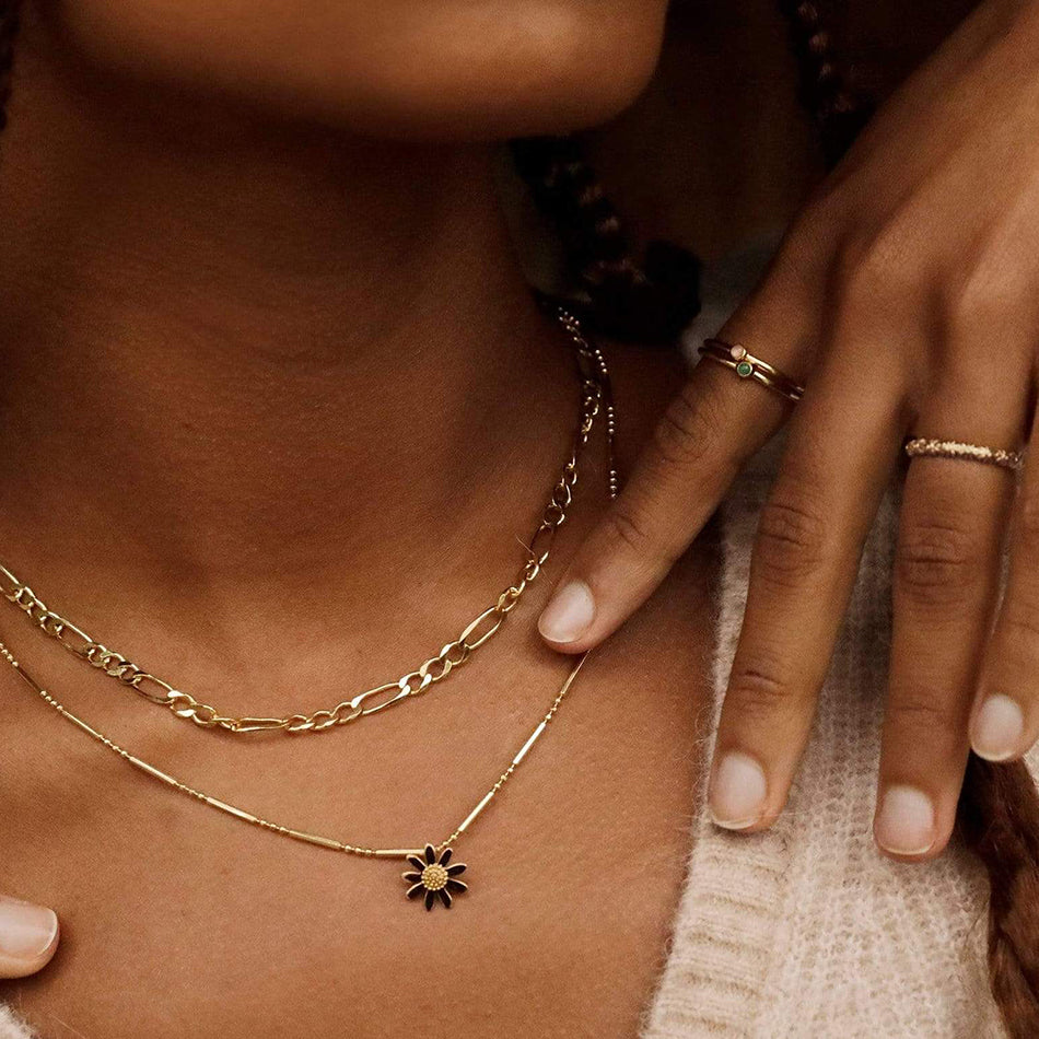 FJ0493 925 Sterling Silver Gold Daisy Ring