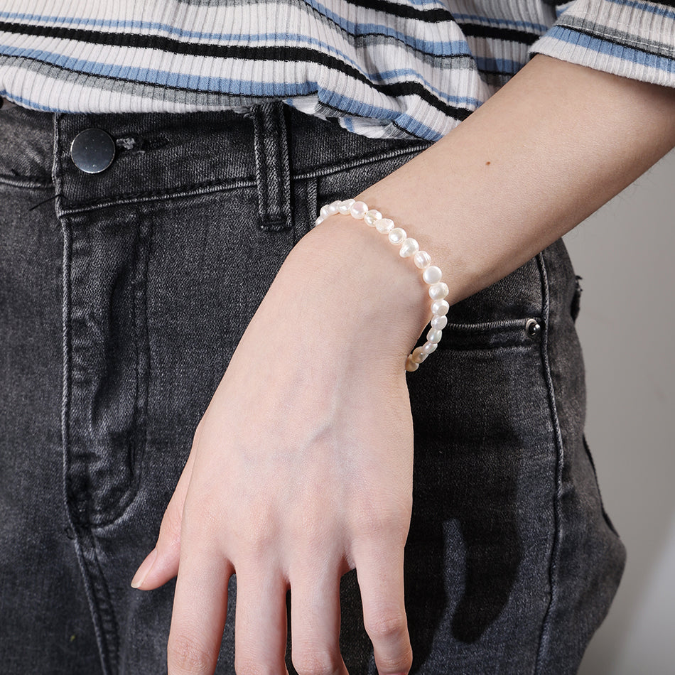 PB0034 925 Sterling Silver 5-6mm Freshwater Pearl Women Bracelets