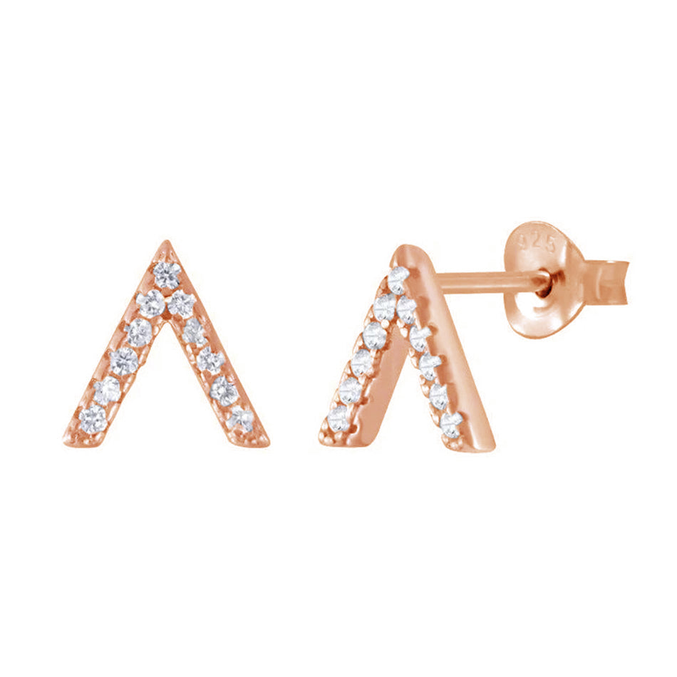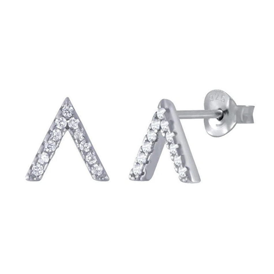 FE0125 925 Sterling Silver Sparkle Chevron Stud Earrings