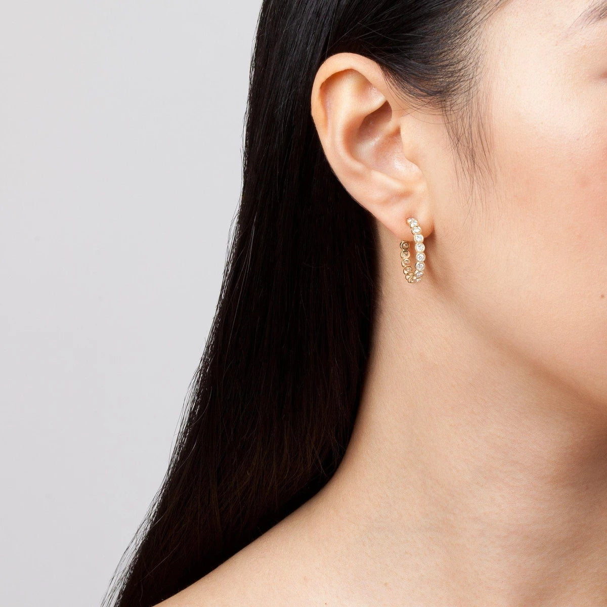 FE0239 925 Sterling Silver Diamond Bezel Eternity Hoop Earrings