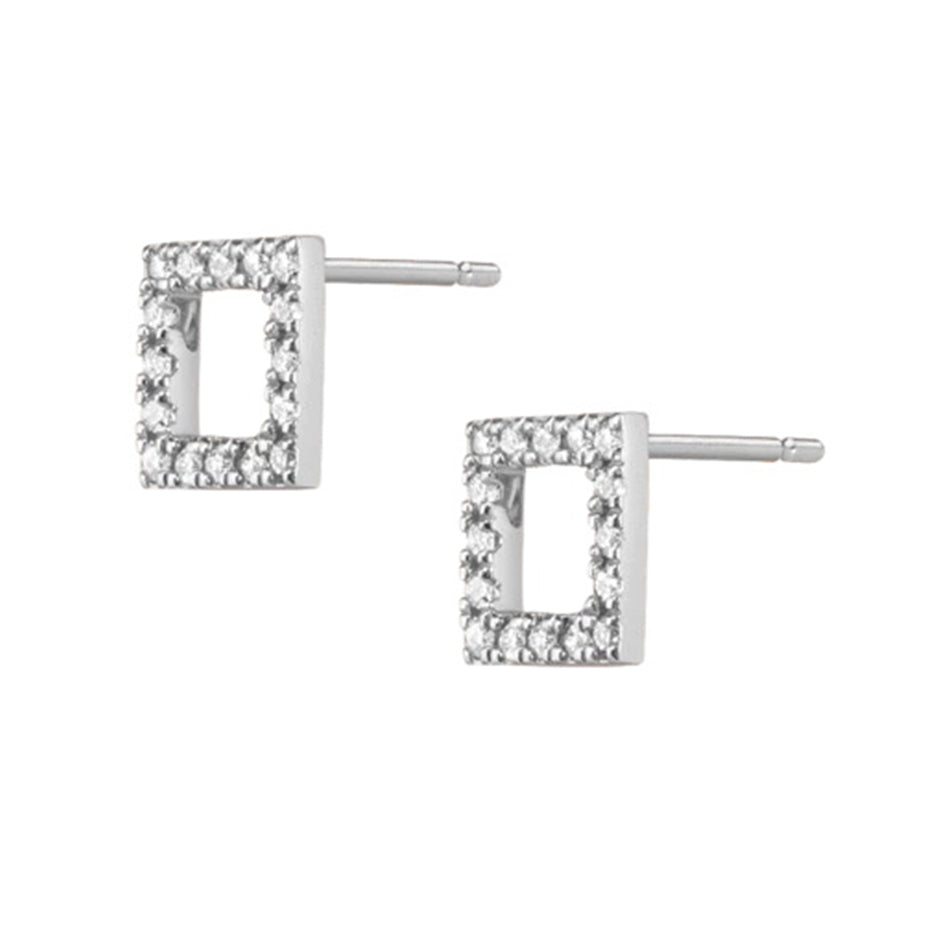 FE0275 925 Sterling Silver Diamond Square Stud Earrings
