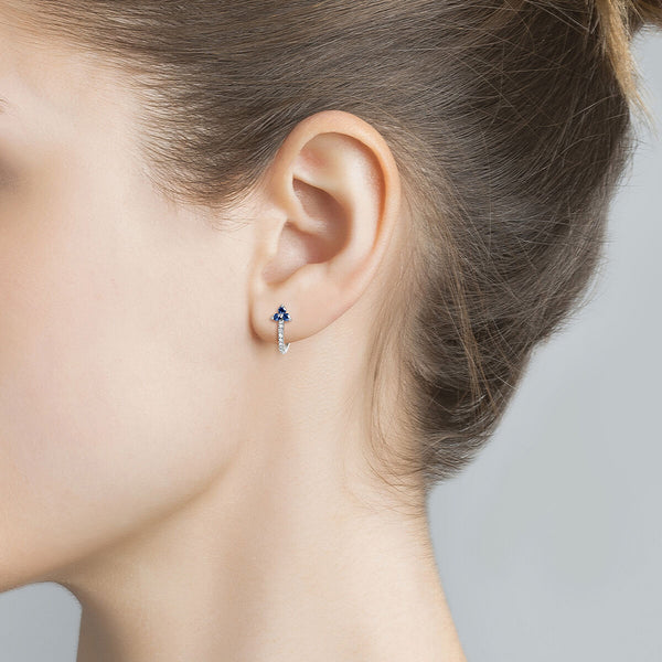 FE0299 925 Sterling Silver Clover Sapphire And Diamond White Gold Hoop Earring