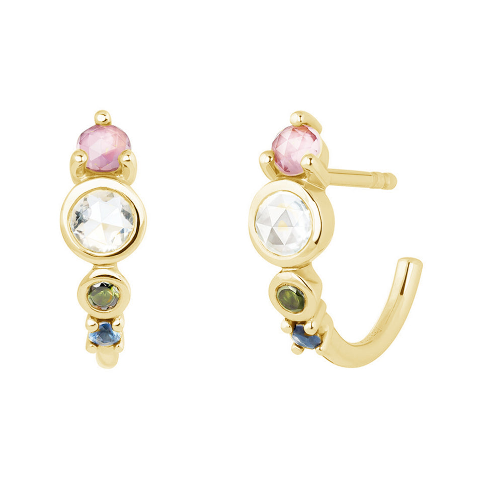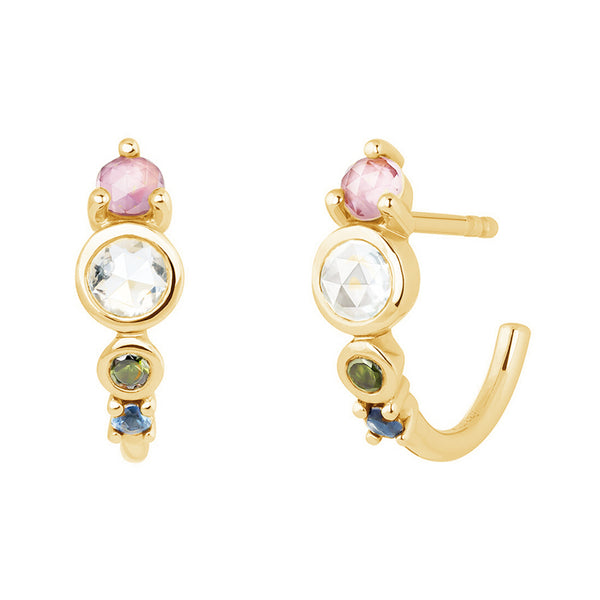 FE0301 925 Sterling Silver Small Stones Hoop Earrings