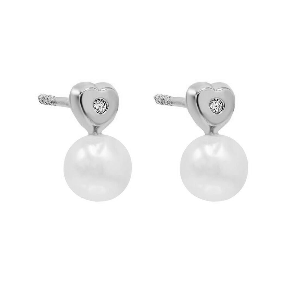 FE0526 925 Sterling Silver Diamond Heart Pearl Stud Earrings