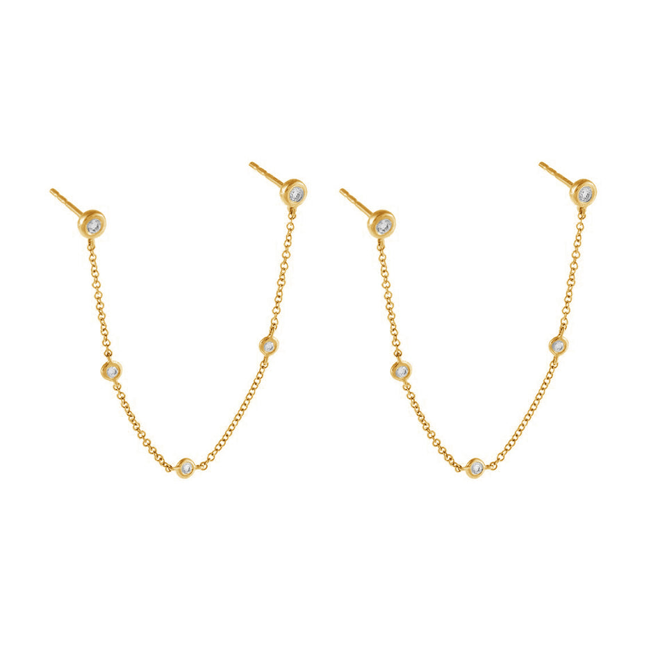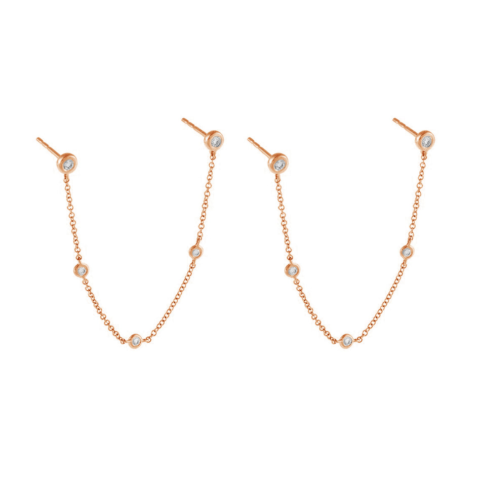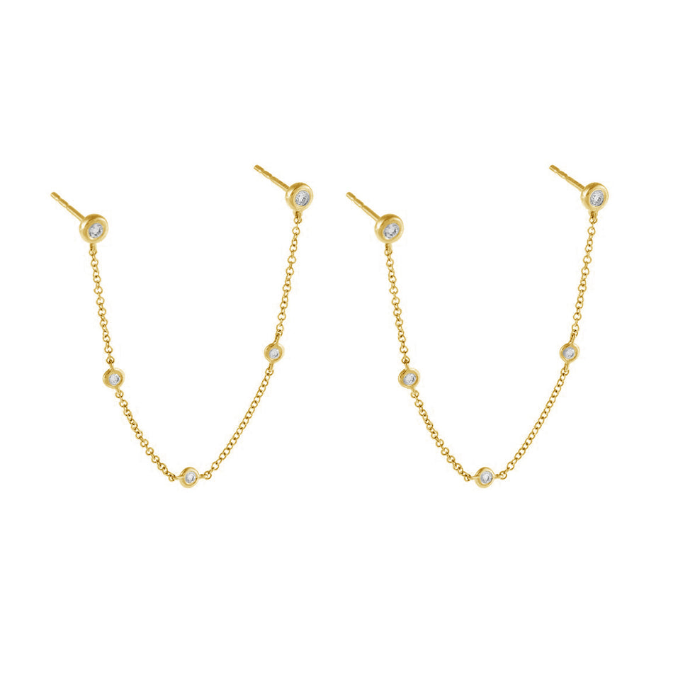 FE1390 925 Sterling Silver Double Chain Stud Earrings
