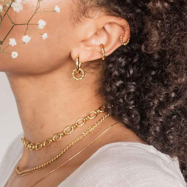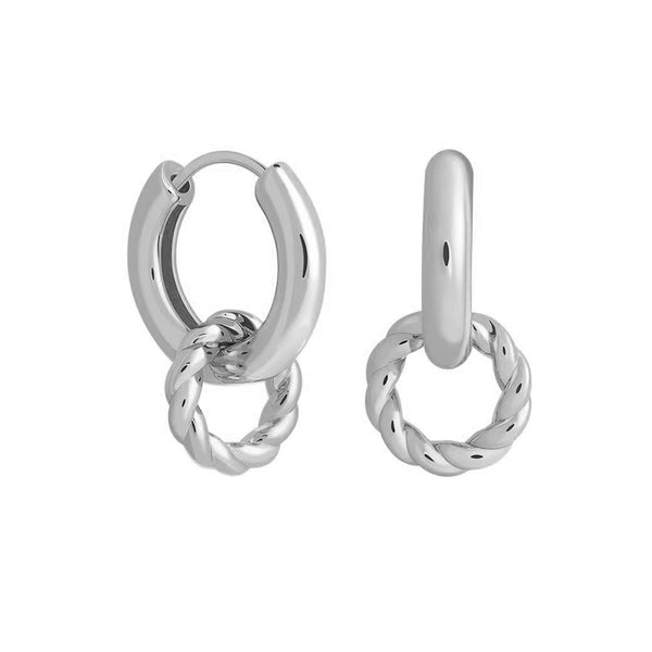 FE1419 925 Sterling Silver Rope Connection Hoop Earrings