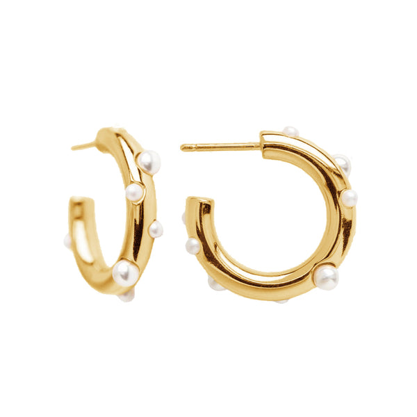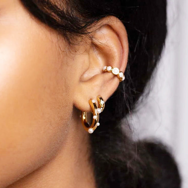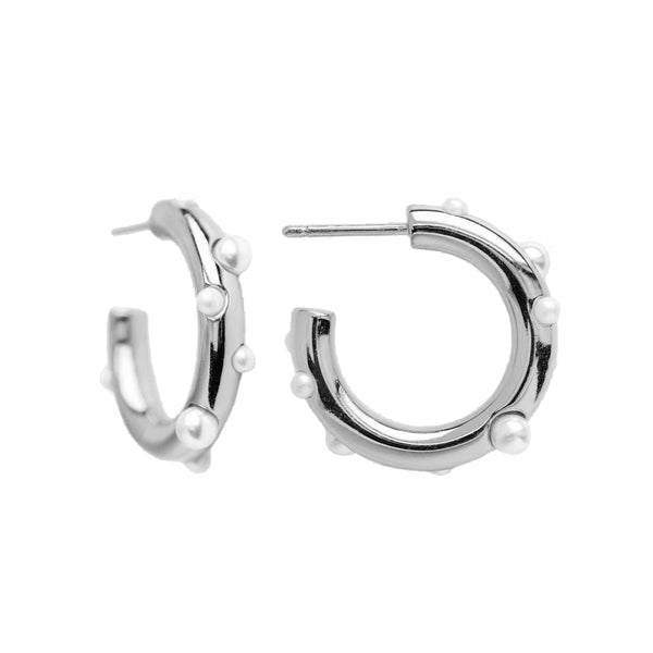 FE1428 925 Sterling Silver Natur Pearl Huggies For Women