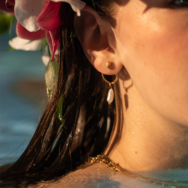 FE1670 925 Sterling Silver CZ Freshwater Pearl Hoop Earring