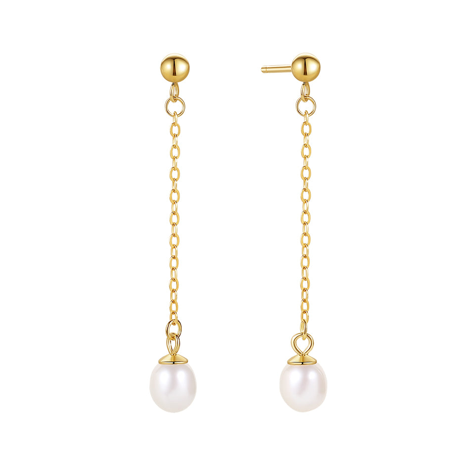 FE1781 925 Sterling Silver Freshwater Pearl Long Chain Stud Earring