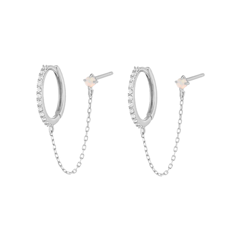FE1841 925 Sterling Silver Zirconia Opal Chain Huggies
