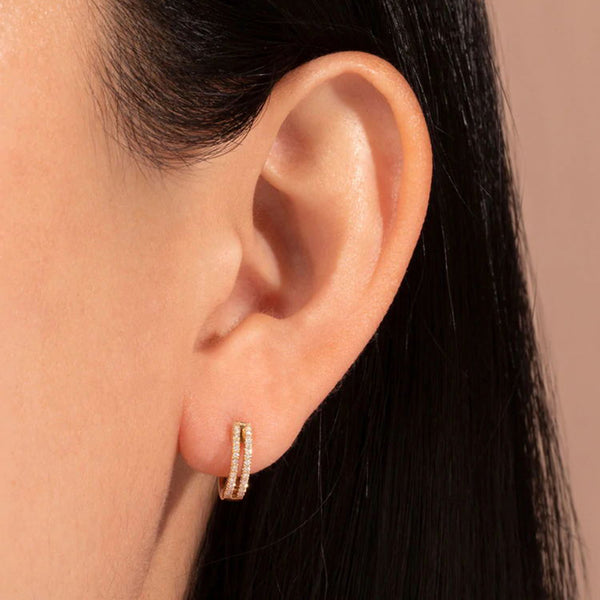 FE1844 925 Sterling Silver Zirconia Double Row Huggies
