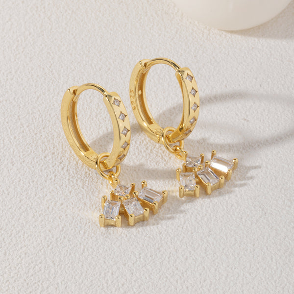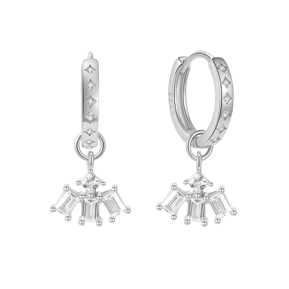 FE1852 925 Sterling Silver Baguette CZ Dangle Hoops