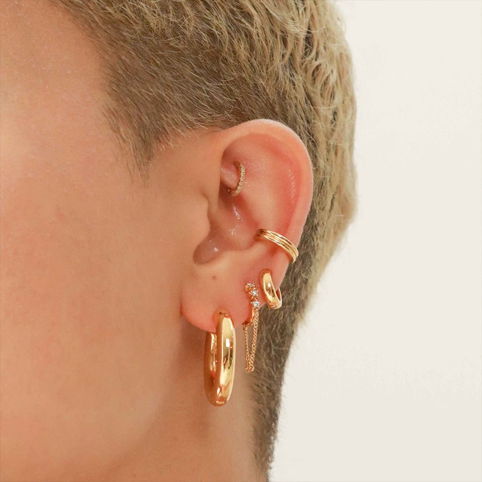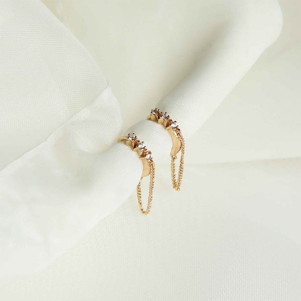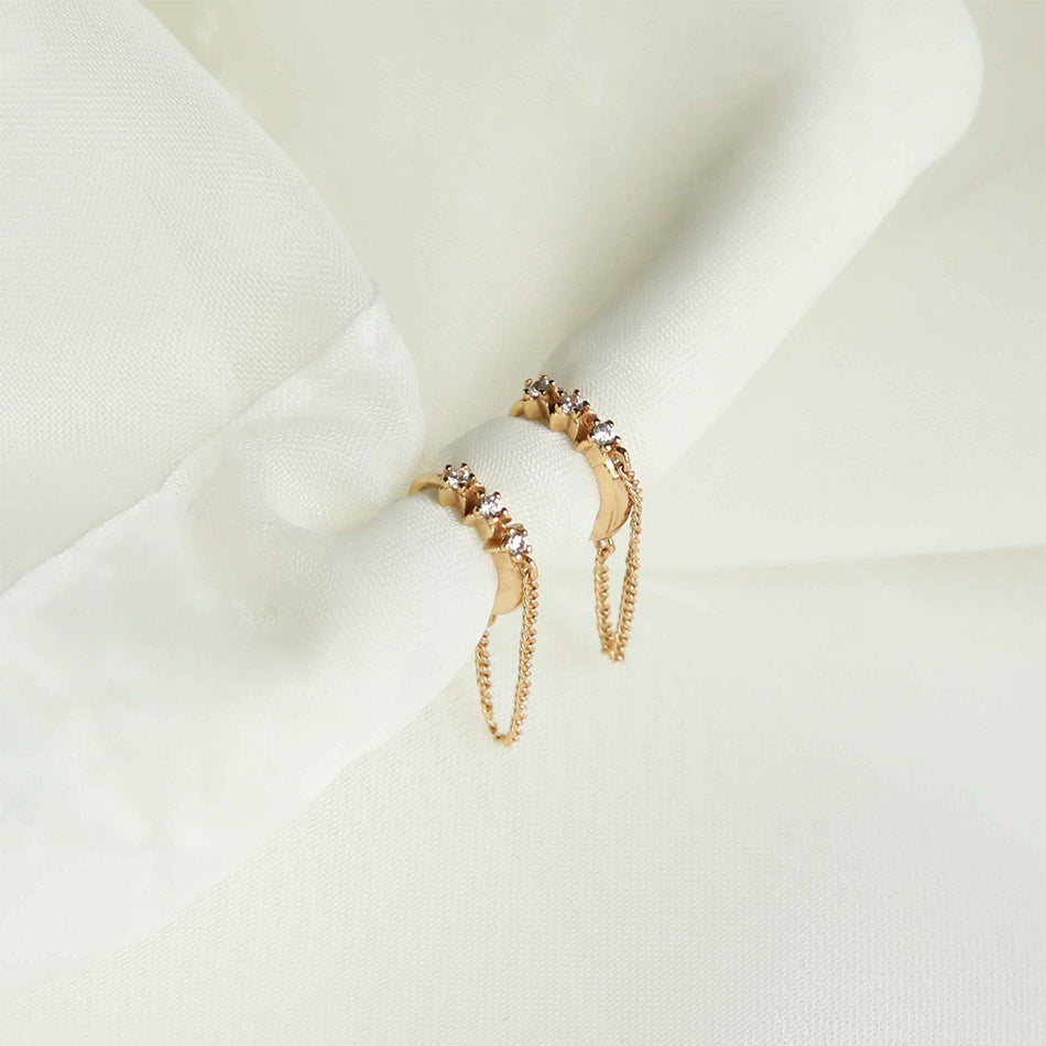 FE1902 925 Sterling Silver Chain Cubic Zirconia Huggies Earrings