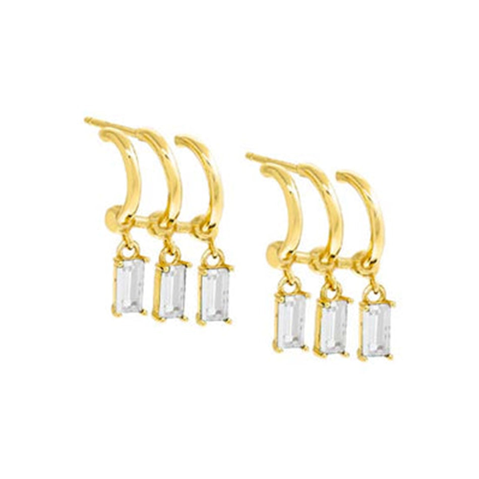 Triple Rows Green Baguette Cubic Zirconia Dangle Hoop Earrings |