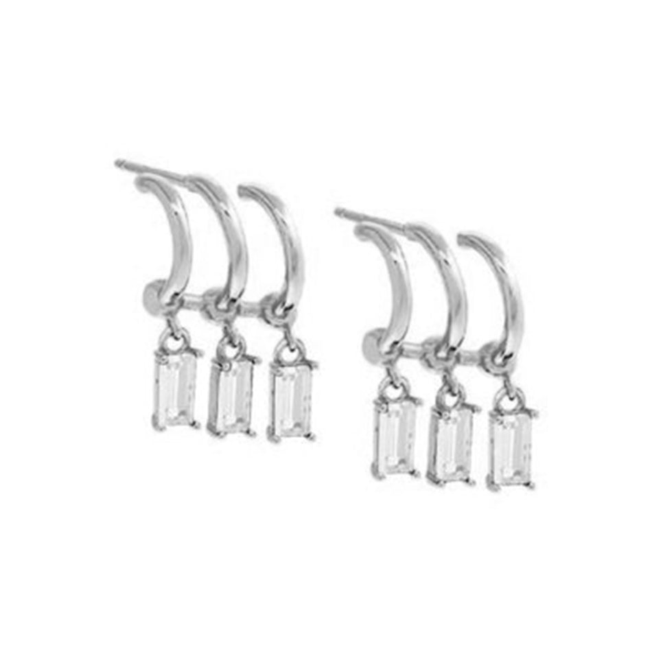 FE2004 925 Sterling Silver Triple Rows Green Baguette Cubic Zirconia Dangle Hoop Earrings