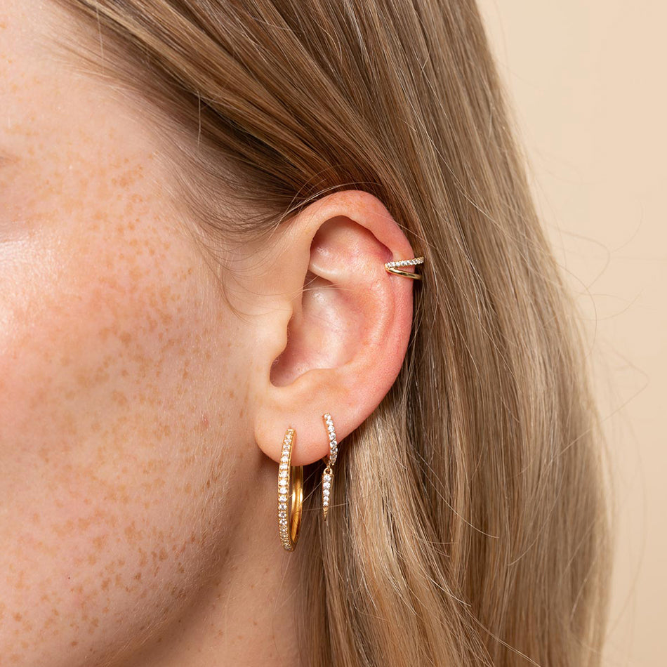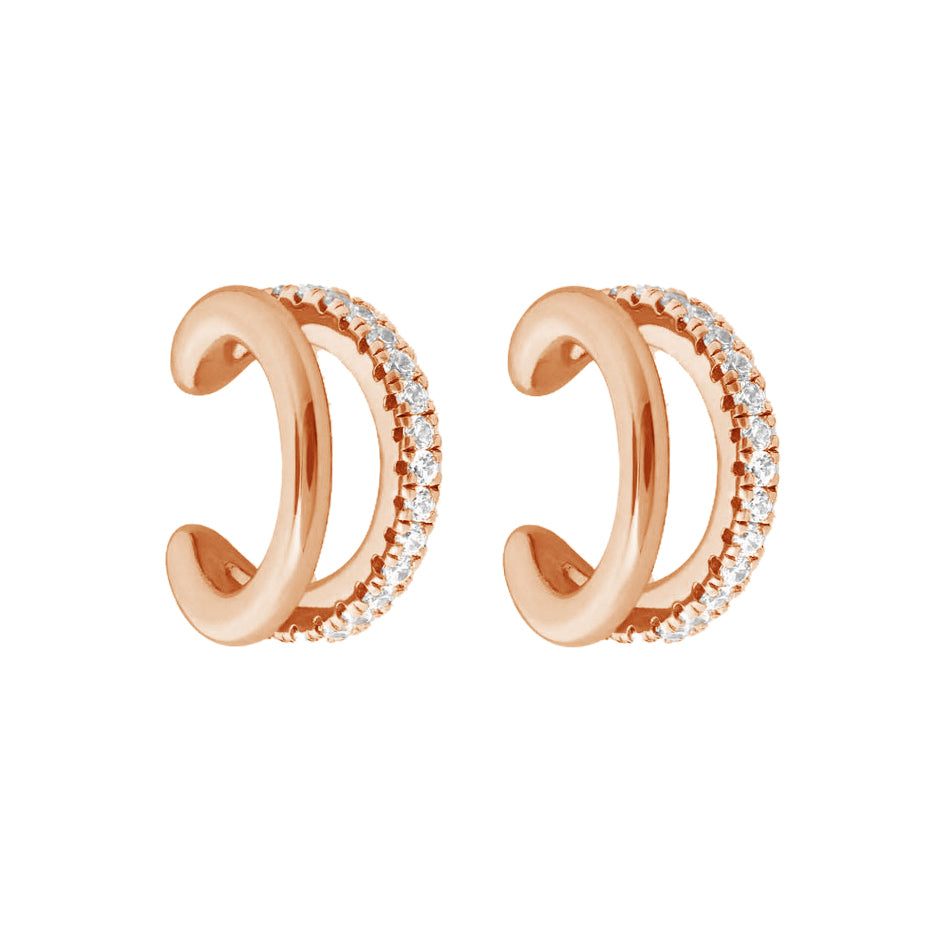 FE2010 925 Sterling Silver Cubic Zirconia Double Band Ear Cuff