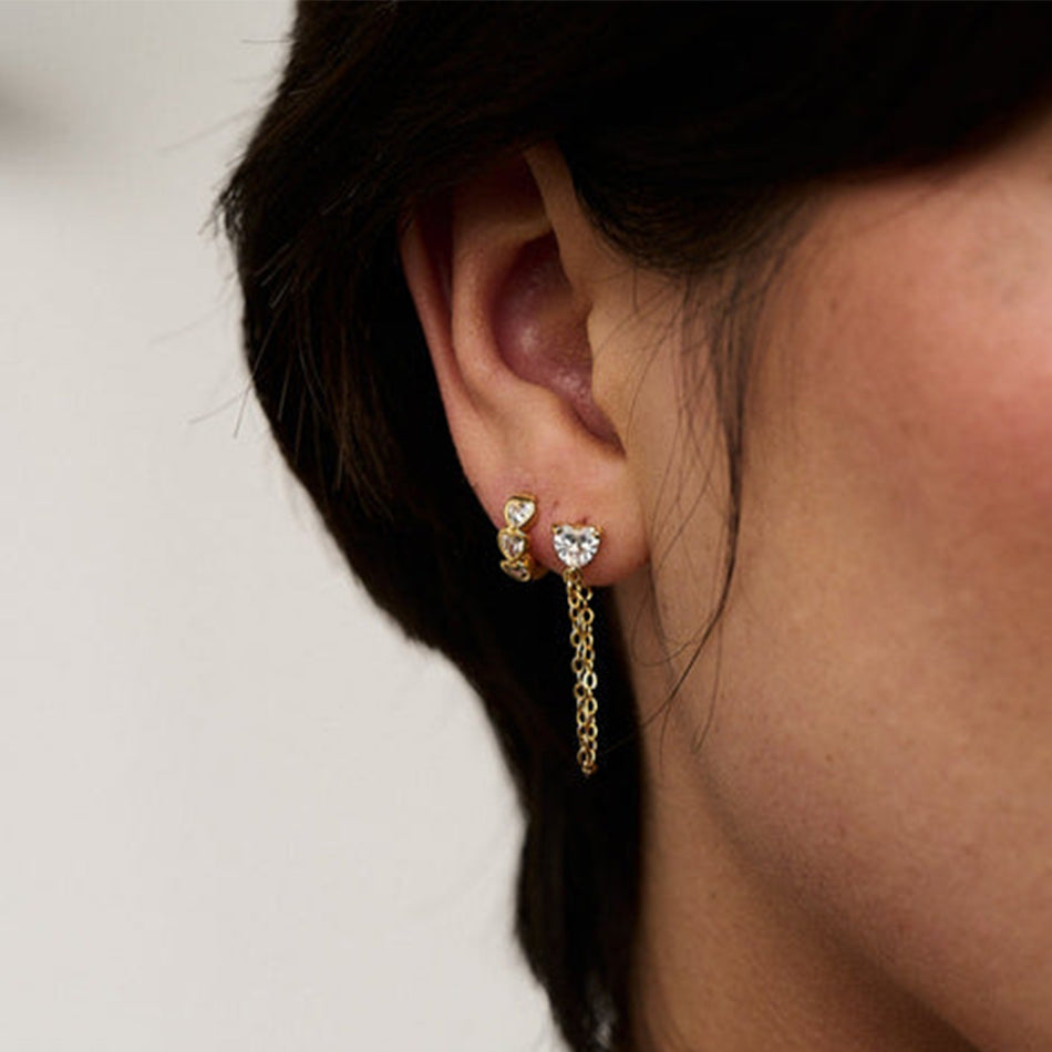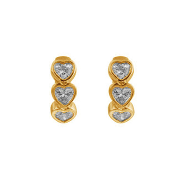 Triple Heart Cubic Zirconia Huggie Hoop Earrings |