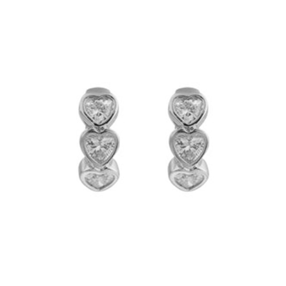FE2019 925 Sterling Silver Triple Heart Cubic Zirconia Huggie Hoop Earrings