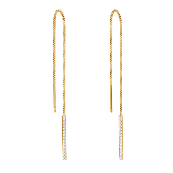 Vertical Bar CZ Long Chain Stud Earrings