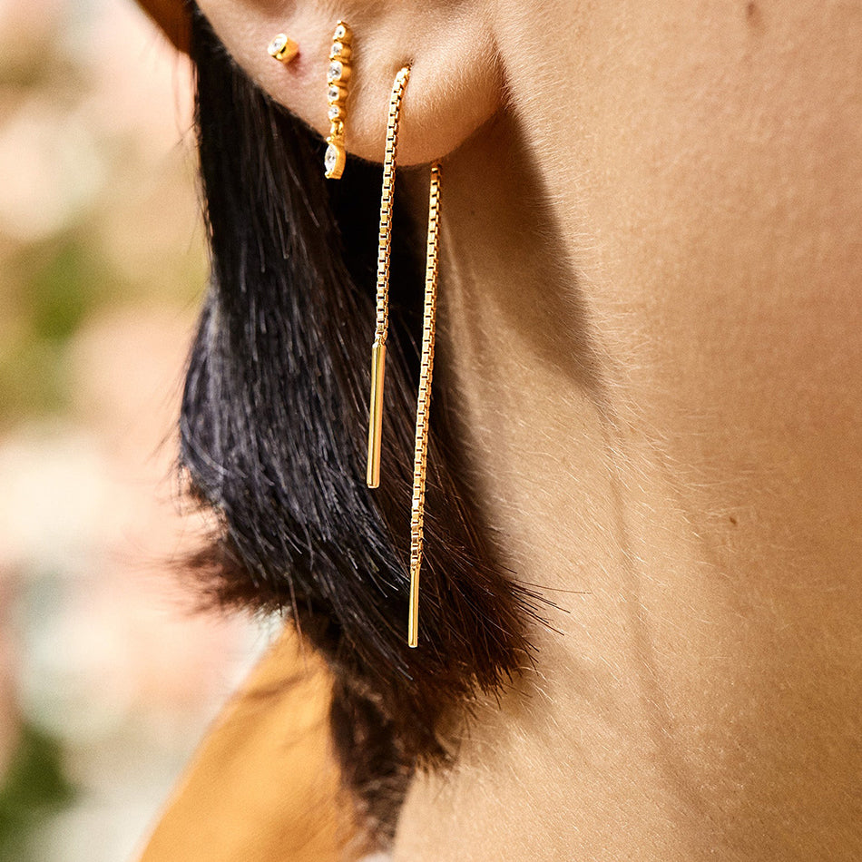 FE2041 925 Sterling Silver Vertical Bar Shell Pearl Long Chain Stud Earrings
