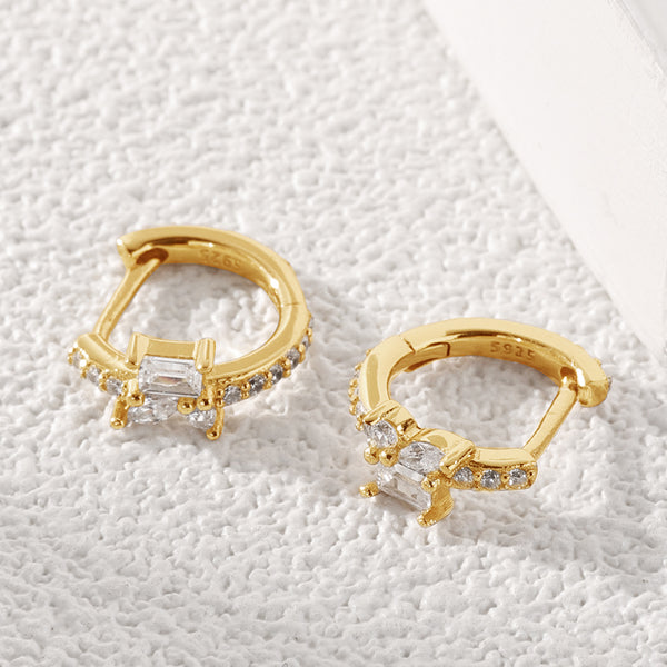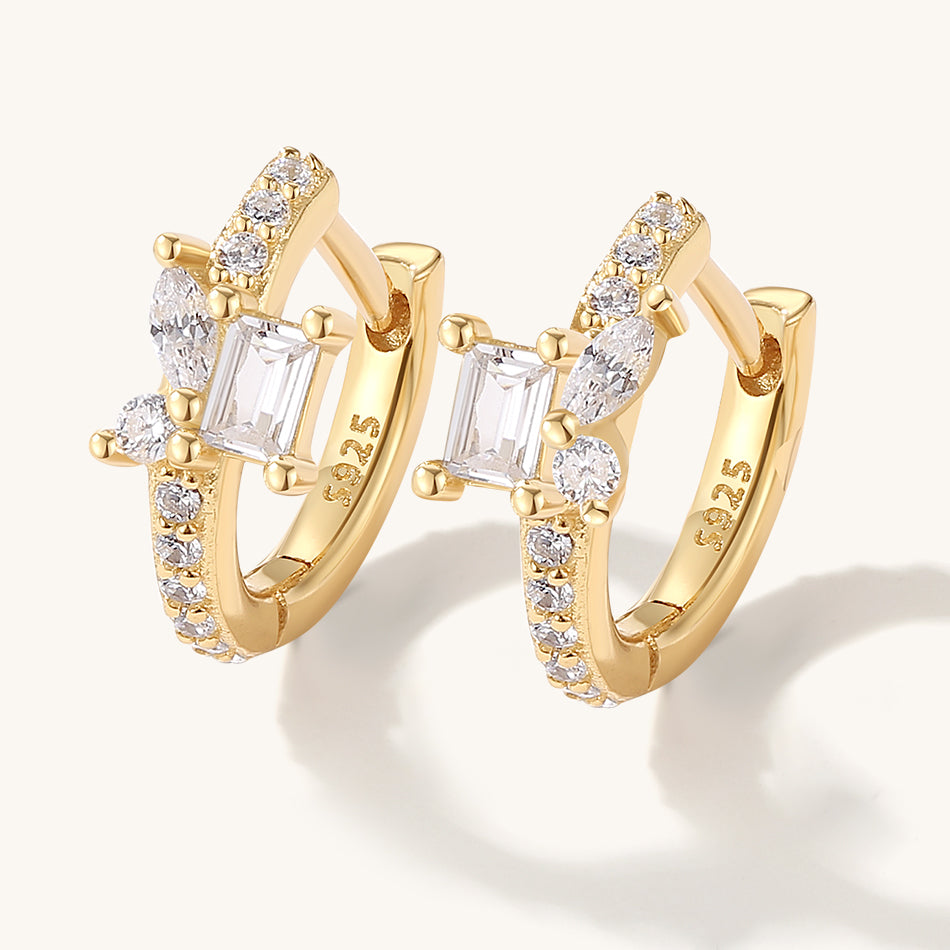 Baguette Marquise Cut CZ Huggie Hoop Earrings |
