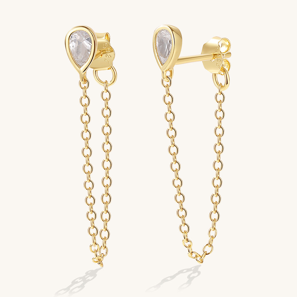 FE2055 925 Sterling Silver Pear Cubic Zirconia Chain Stud Earrings