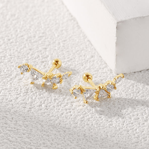 FE2056 925 Sterling Silver Cubic Zirconia Geometric Barbell Stud Earrings