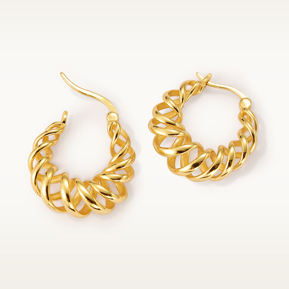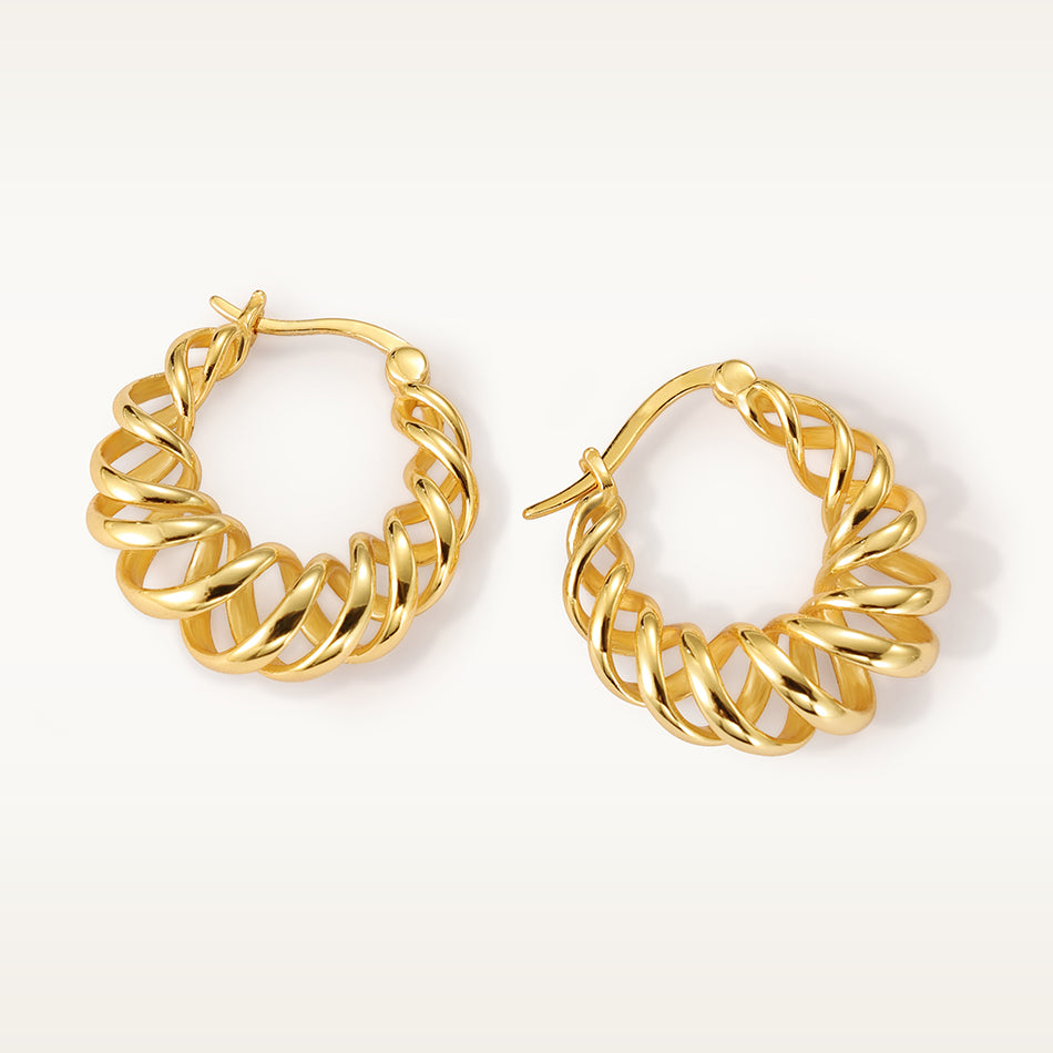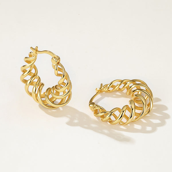 FE2078 925 Sterling Silver Wire Textured Twist Hoop Earrings