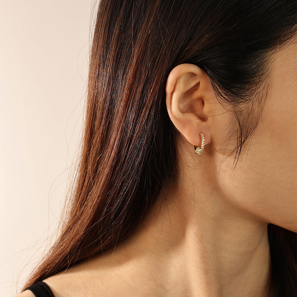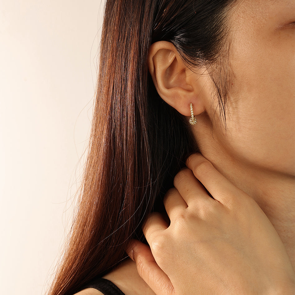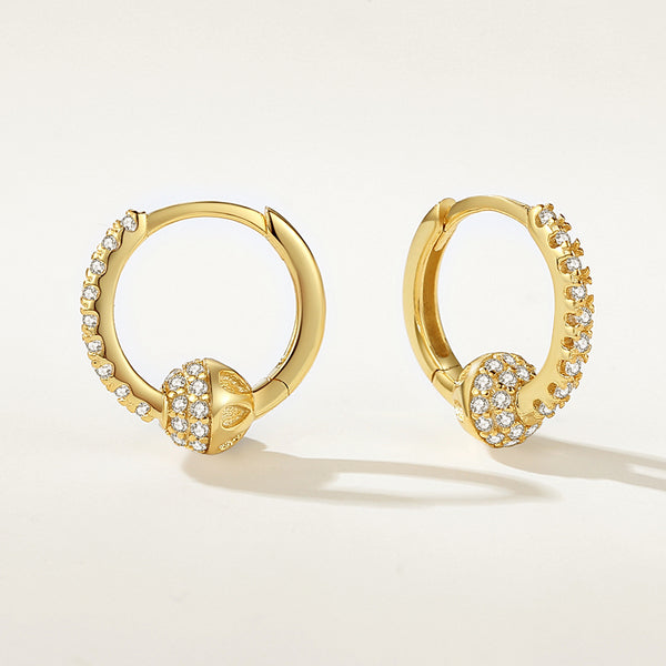 FE2093 925 Sterling Silver Pave Zirconia Ball Hoop Earrings