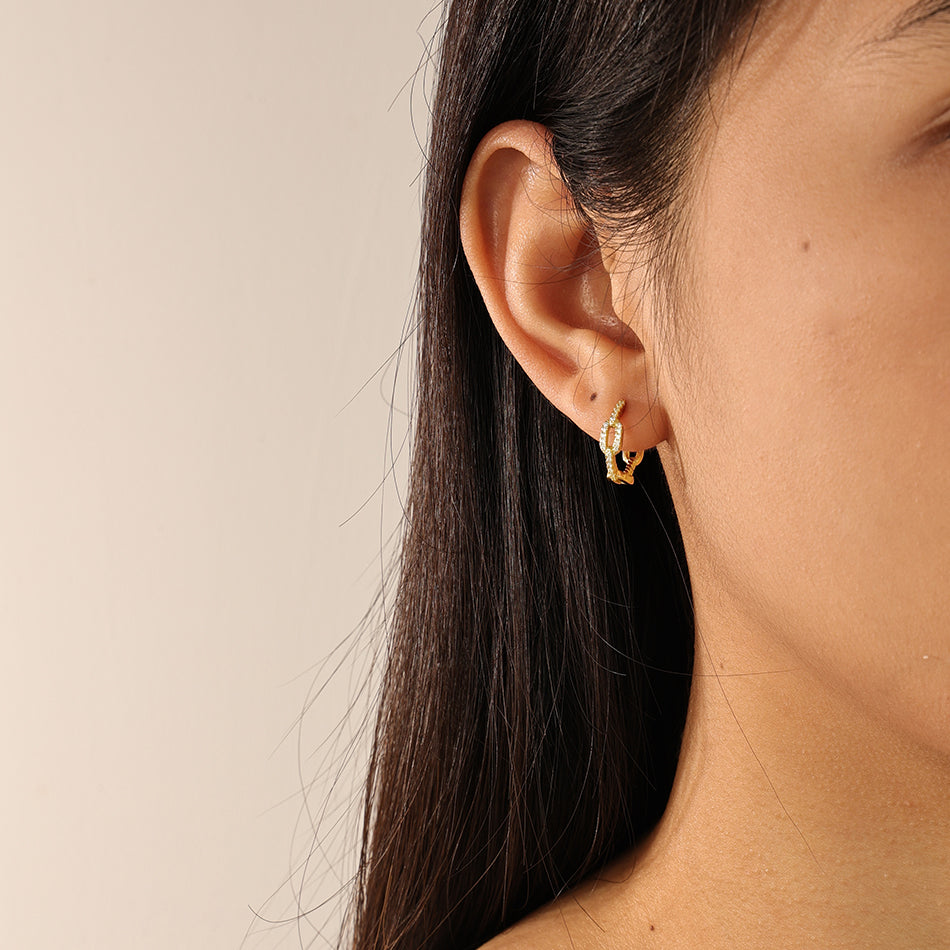 Pave Cubic Zirconia Link Chain Hoop Earrings |