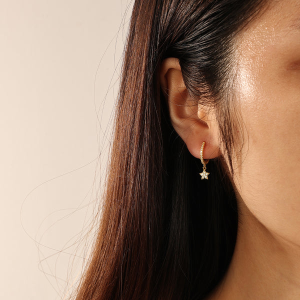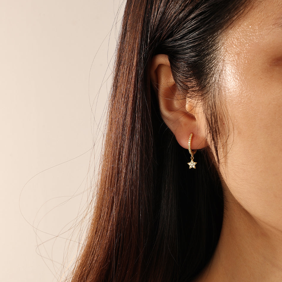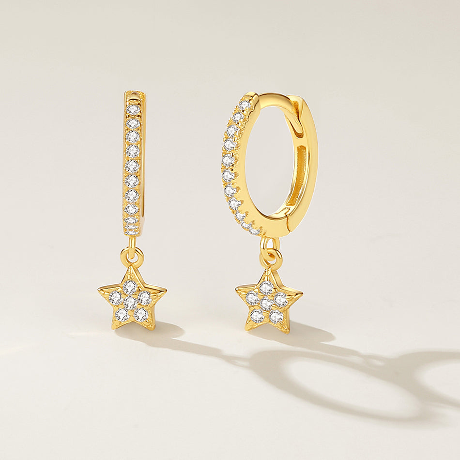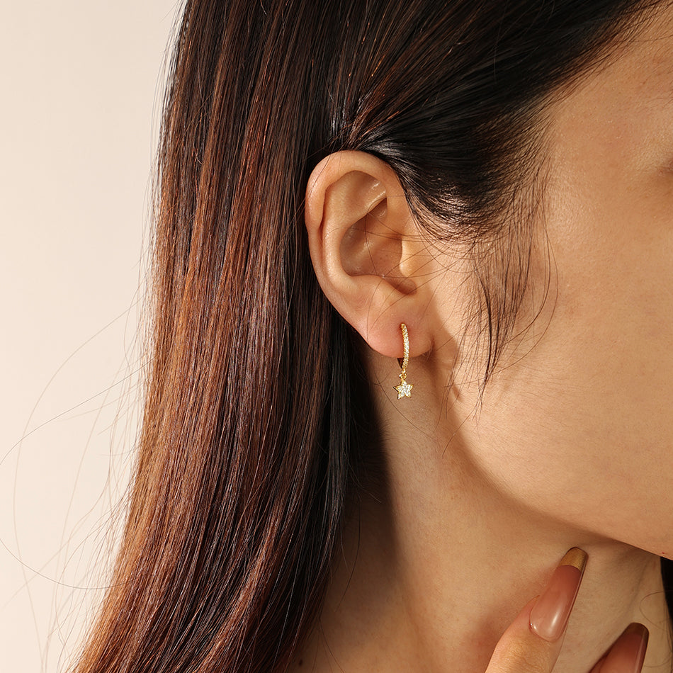 Dainty Zirconia Star Dangle Hoop Earrings |