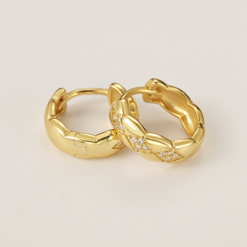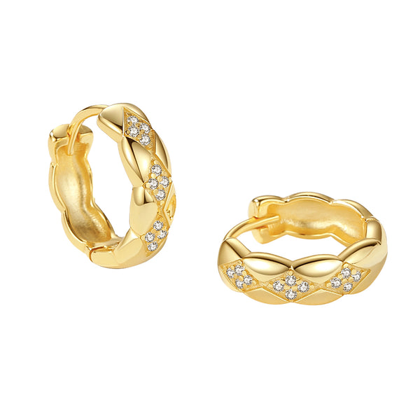 FE2187 925 Sterling Silver Diamond Shape CZ Hoop Earrings