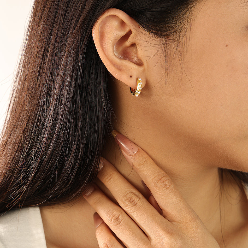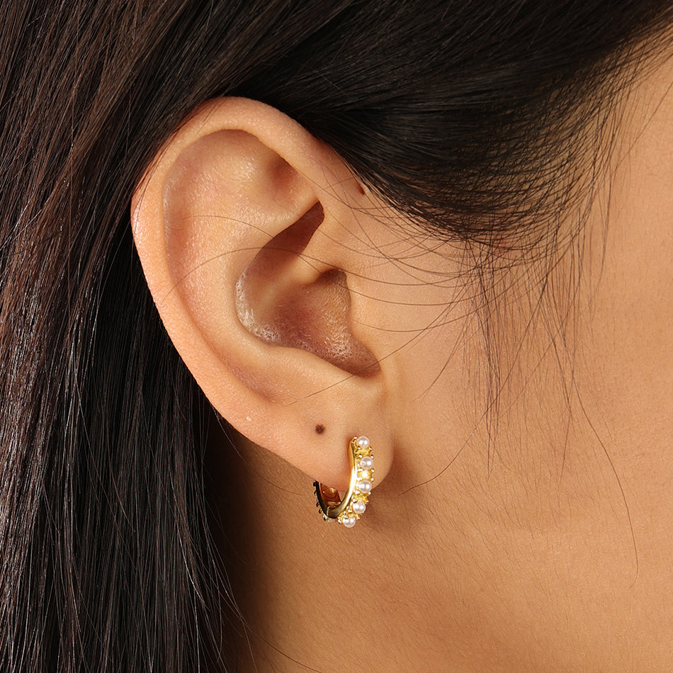FE2188 925 Sterling Silver Classic Shell Pearl Hoop Earrings