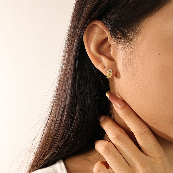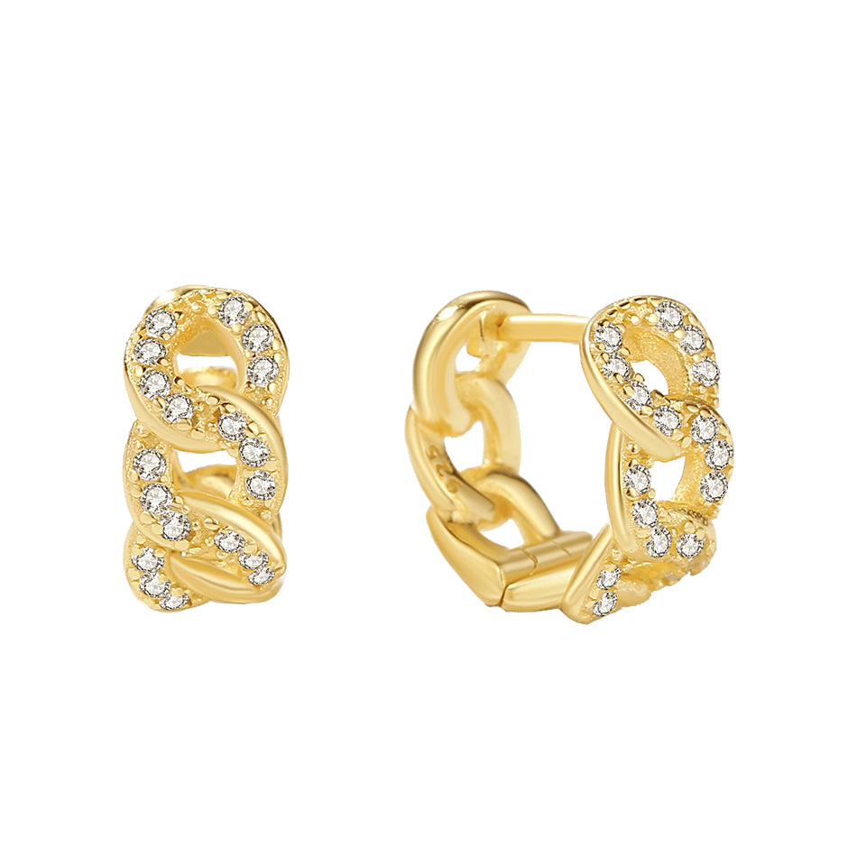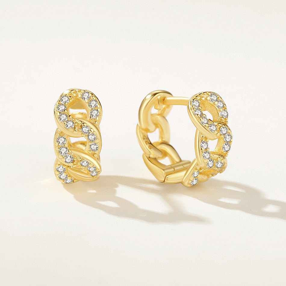 FE2206 925 Sterling Silver CZ Link Chain Women Hoop Earrings