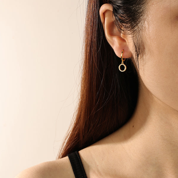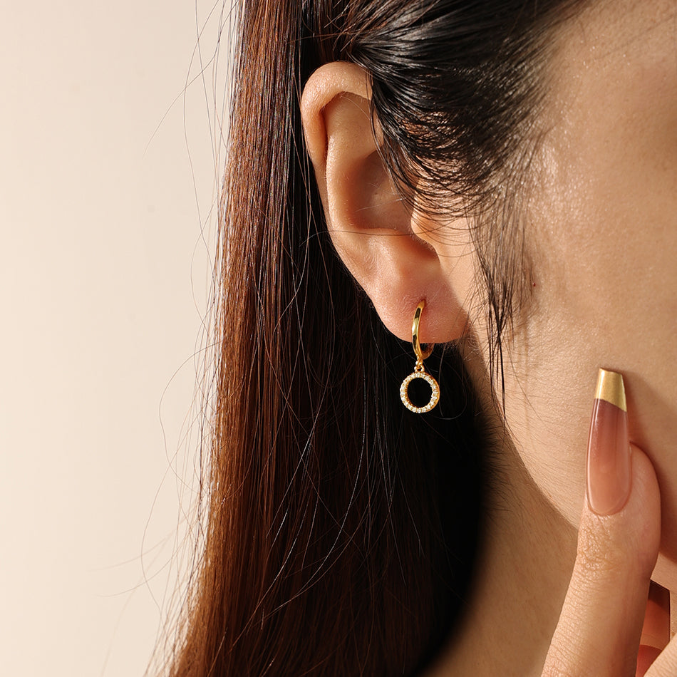 Circle Cubic Zirconia Dangle Hoop Earrings |